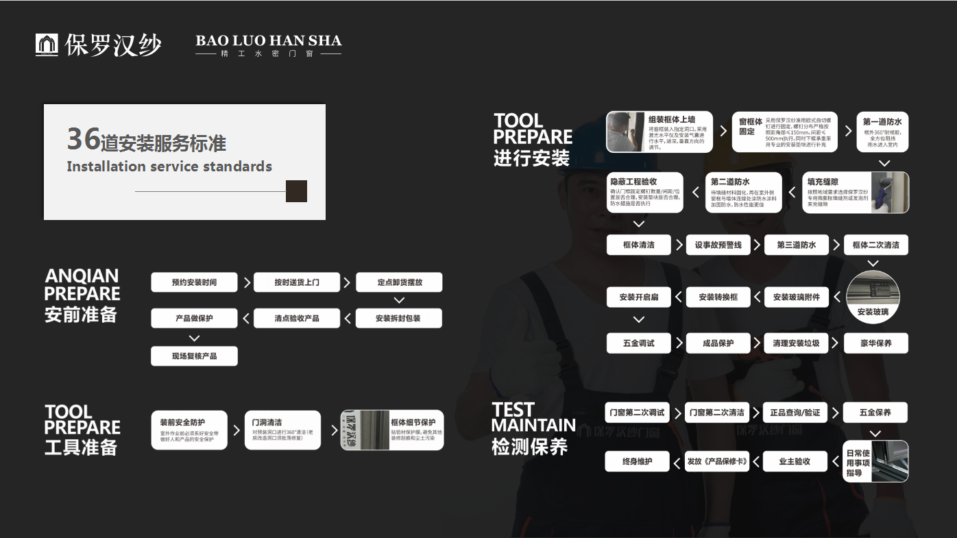 隨著《系統門窗安裝交付標準》審查的順利通過,門窗定制行業將改變傳統粗放發展模式,實現高質量發展。作為精工水密門窗的搖旗者,保羅漢紗門窗從創始至今,始終堅持精工智造為消費者提供高品質產品,另一方面,建立“36道精工安裝服務標準”,讓門窗安裝流程標準化、科學化、規范化,為推動《系統門窗安裝交付標準》貢獻品牌力量。